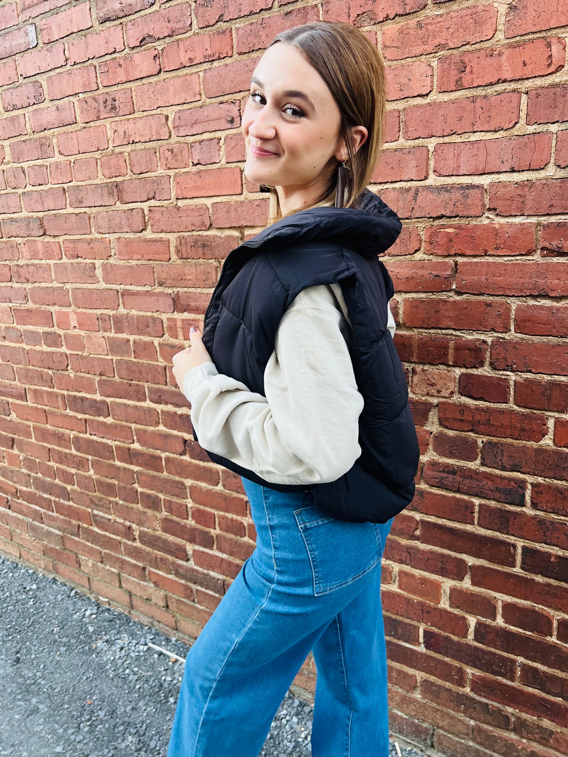 Short Puffer Vest w/ pockets!! This is a go to if you don't like jackets/coats but still want to be bundled up in the colder months! Throw a cute sweater on under it or a hoodie for a dressed down look!
