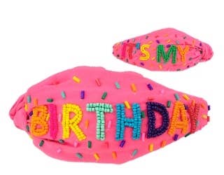 "It's My Birthday" Seed Bead Pink Fabric Headband
