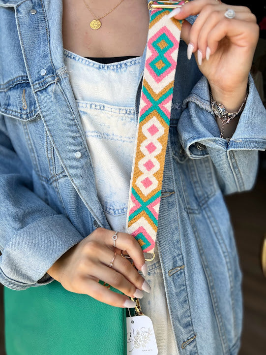 Comes with adjustable Tribal Guitar strap & we have others in store you can purchase to interchange to give your bag a whole new look!
