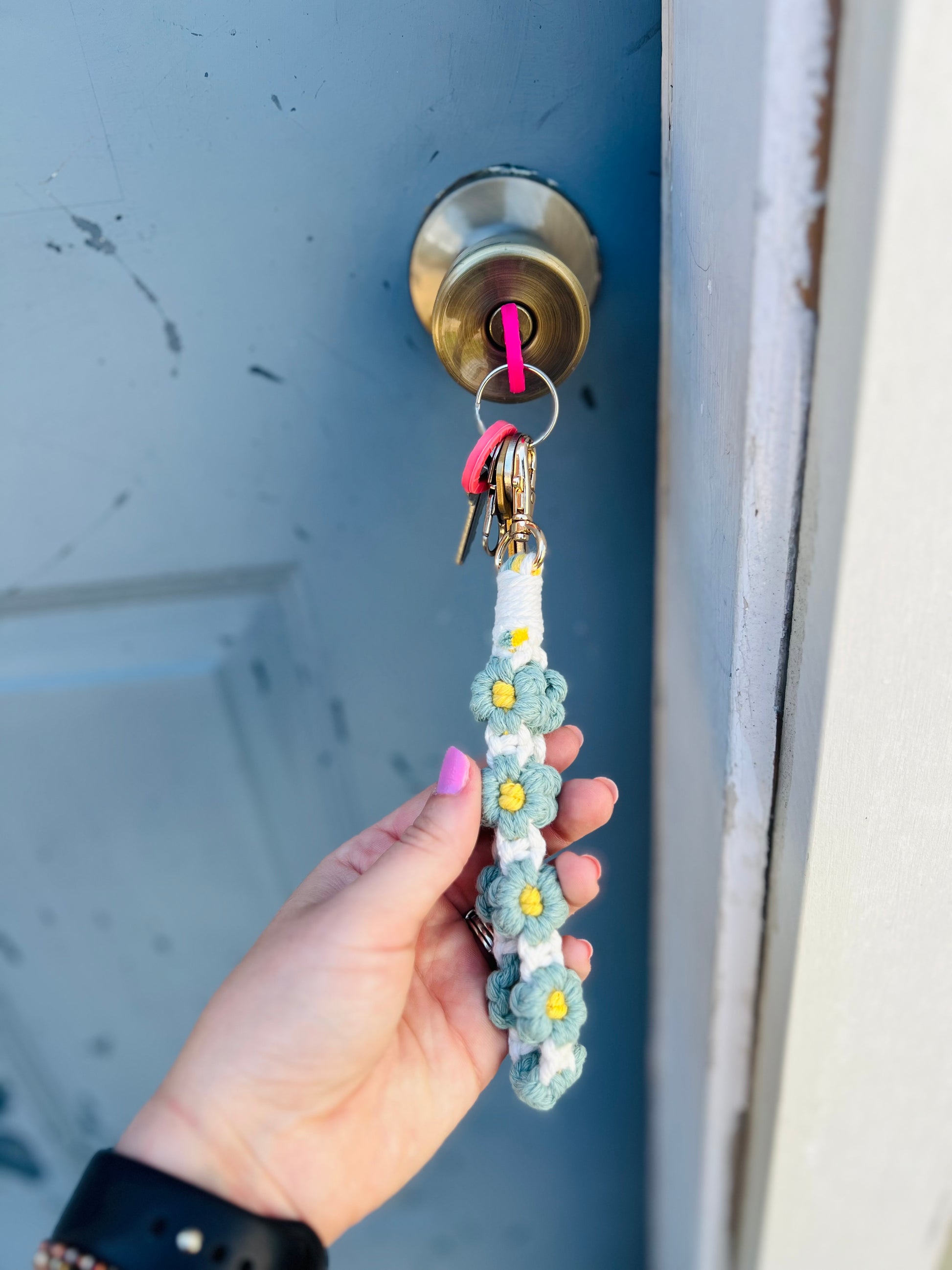 Macrame Daisy | Keychain - Green