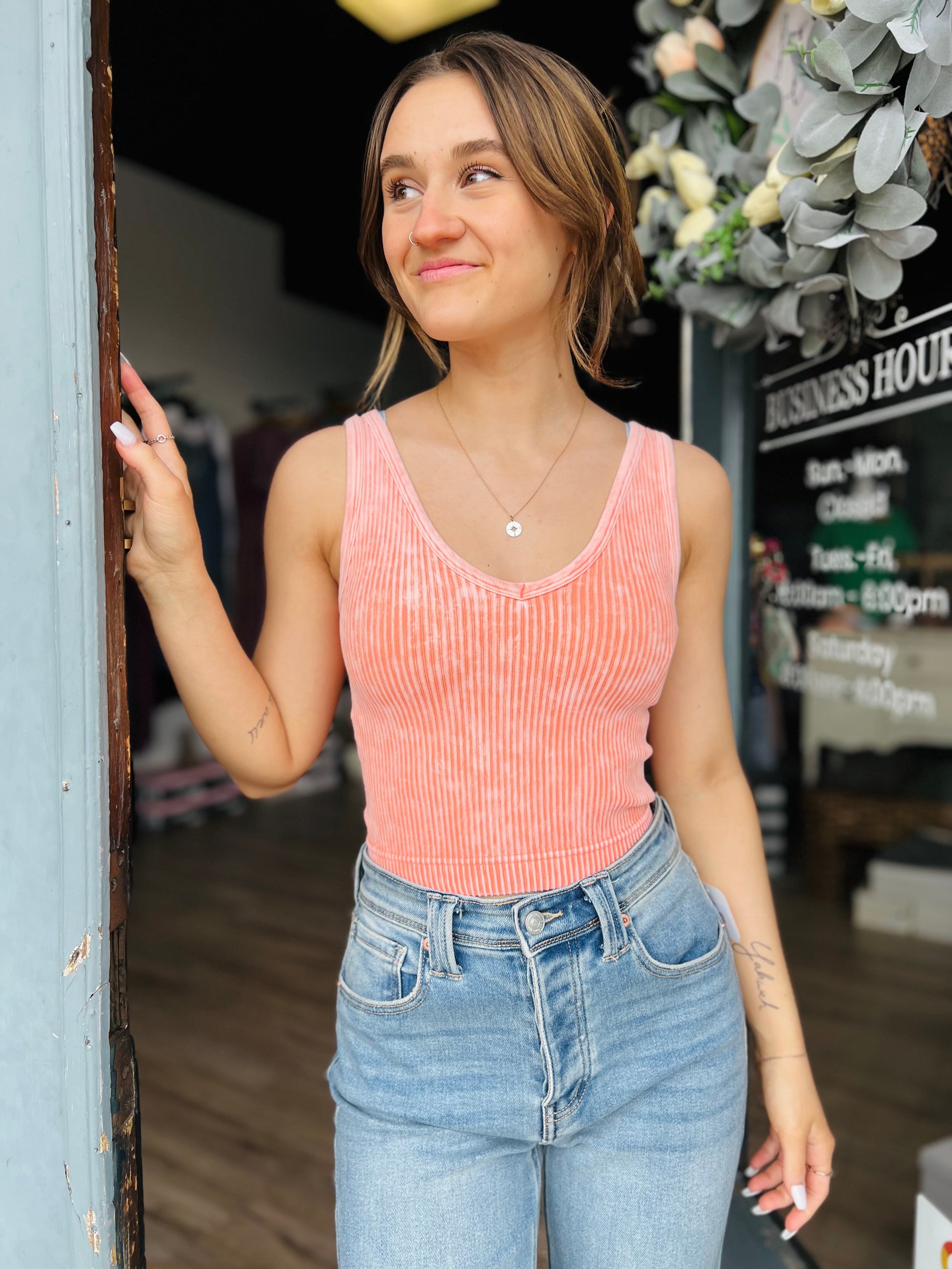 Ribbed Cropped Tank Top - Coral