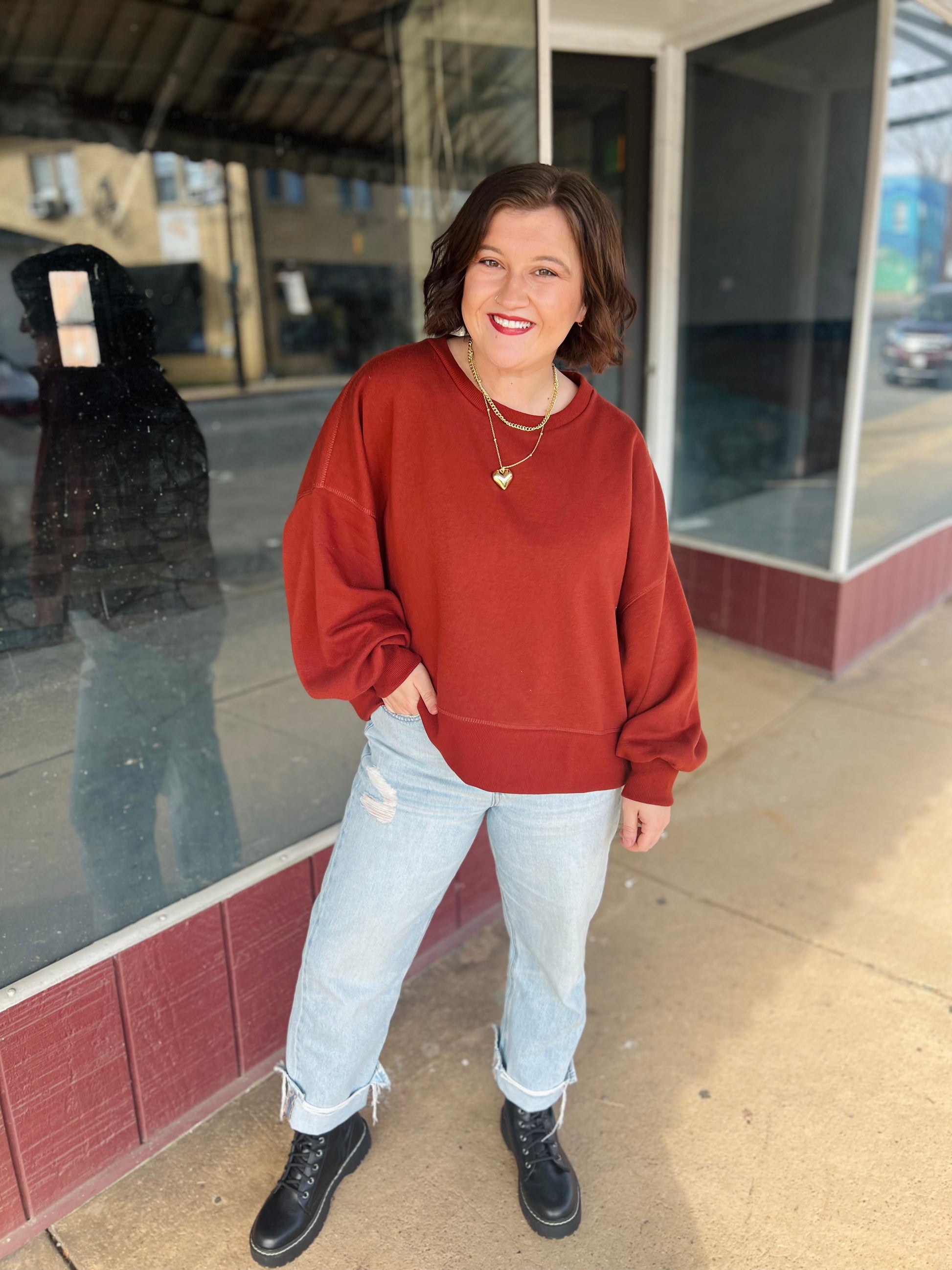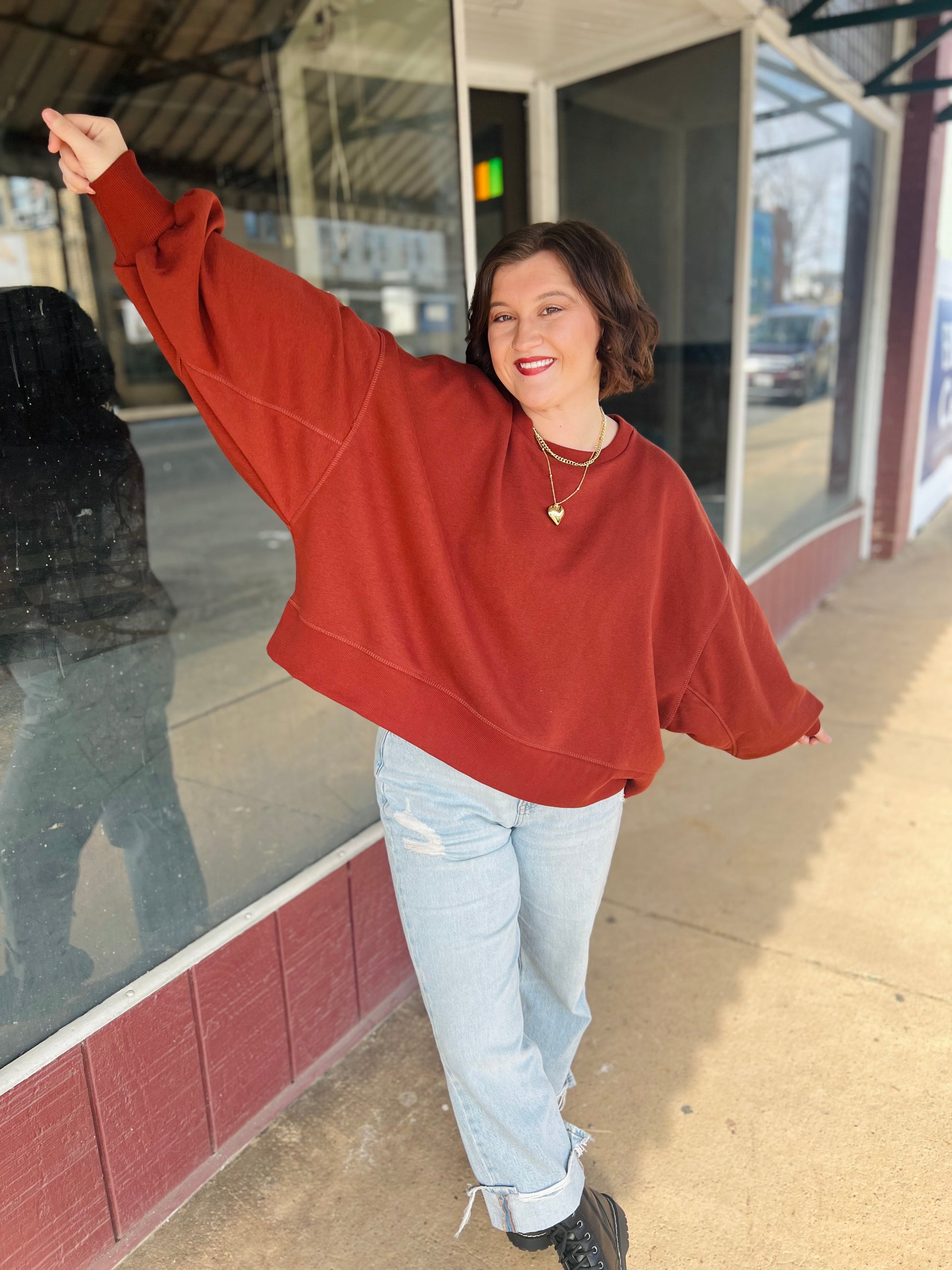 CURVY SIZE BALLOON SLEEVE OVERSIZE SWEATSHIRT.