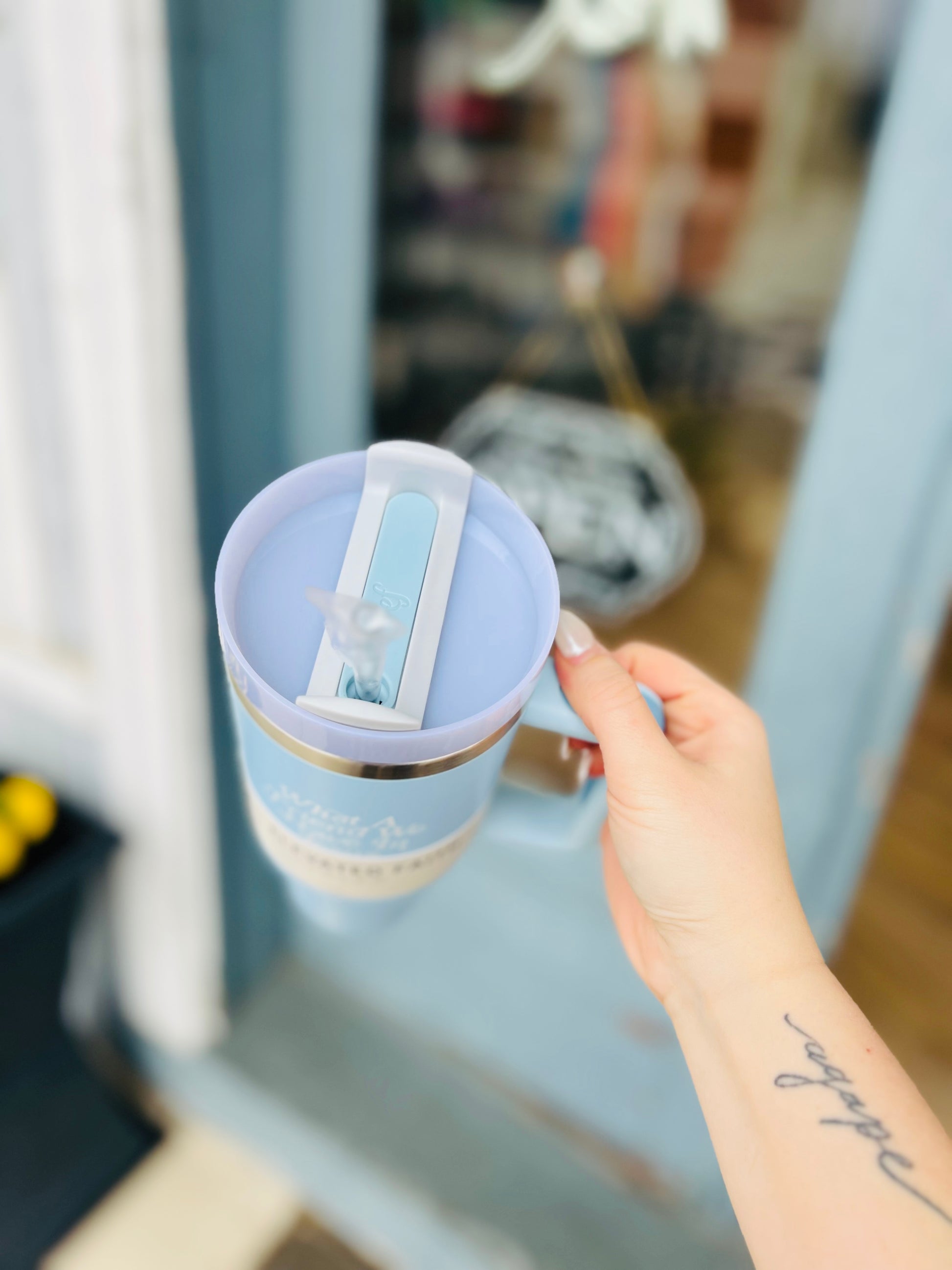 Keep your faith conversation going while staying hydrated with our What a Friend in Jesus 40 oz Tumbler. Stainless steel and cupholder-friendly, this tumbler is your new go-to for drinks, hot or cold. Take it with you on quick errands or all-day adventures! "No longer do I call you servants, for the servant does not know what his master is doing; but I have called you friends, for all that I have heard from my Father I have made known to you." -John 15:15 * 40 ounces * 304/201 stainless steel * Comfort-grip handle * Car cupholder compatible * Reusable straw (NO DISHWASHER) * Dishwasher safe